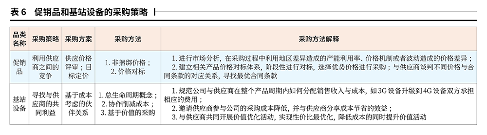 根據(jù)品類定位的結(jié)果制定促銷品和基站設(shè)備的采購策略,如表6所示。